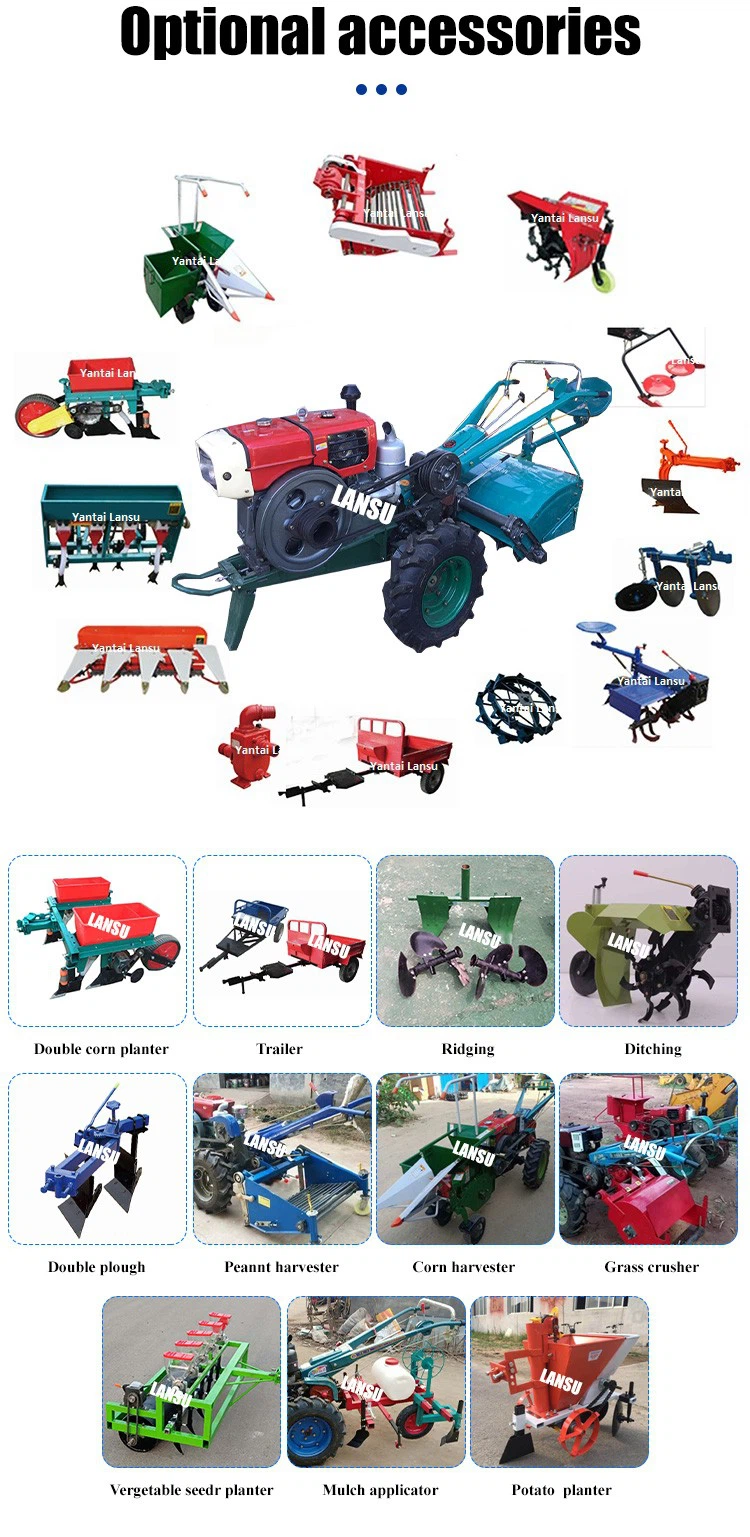 Nuestro MINI TRACTOR A PIE con motor diesel, opcional para elegir como Rotovator o cultivador, remolque de 1-3 toneladas, sembradora de trigo, etc.