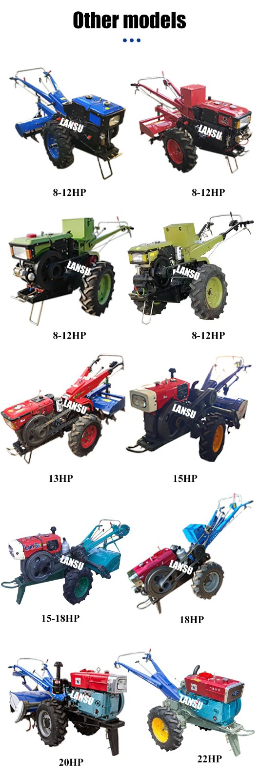 Accesorios para azadas rotativas Tractor para caminar de alta calidad Estamos suministrando diferentes tractores para caminar con caballos de fuerza para granjas, Venta muy popular para el mercado de África, como Ghana, Tanzania, Madagascar, Kenia, también Mauricio, Malasia, mercados de Rumania, etc.